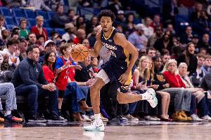 鹈鹕球员墨菲上半场进攻欲望比较强,频频出手投篮,虽然攻筐手感一般,但是外线三分手感还是不错。