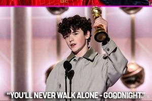 利物浦球迷欧文·库珀在金球奖获奖感言环节用队歌“你永远不会独行”结尾❤️