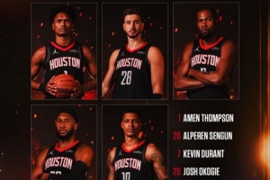 火箭:阿门、奥科吉、杜兰特、贾巴里·史密斯、申京。