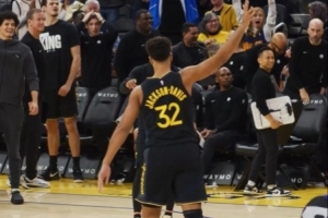 勇士官方表示,这是TJD生涯首个三分球。
