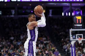 GIF-威少左侧弧顶空位三分命中