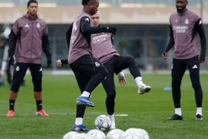 记者:卡马文加现身皇马备战塞尔塔赛前训练,此前因牙疼缺席比赛