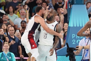 “不过,我昨晚也说了,那场比赛是我参加过的最伟大比赛之一。能够与你们共享这份经历很荣幸,最终也得到了童话书般的结局。我们一度可能在决赛碰上加拿大队,他们阵中有许多NBA球员,表现很出色,然后法国队淘汰了他们。我们就想到,我们在半决赛击败塞尔维亚队并在巴黎的决赛中与东道主球队争夺金牌的概率有多大?那是一个故事书般的结局,斯蒂芬(库里)在比赛末段让所有人晚安的表现很疯狂。”