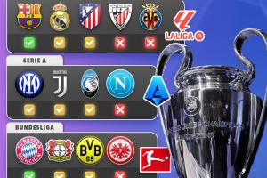体育资讯01月29日讯 欧冠联赛阶段落下帷幕,外媒score90统计了五大联赛球队的晋级情况(如上图)。绿色√代表已经晋级欧冠淘汰赛,黄色√代表晋级附加赛。红色×代表已经被淘汰。