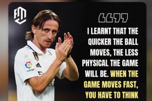 莫德里奇接受采访时说道:“我意识到,球移动得越快,比赛的身体对抗就越少。当比赛节奏快时,你必须快速思考,而当比赛节奏慢下来时,就会给身体素质好的球员创造机会。”