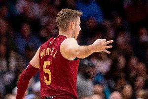 本场比赛,骑士射手梅里尔大发神威,半场三分7中7,狂砍26分,下半场又命中2记三分,全场出战25分钟,12投11中,其中三分10中9,另外罚球1中1,狂砍生涯新高32分,还有4篮板1助攻1抢断1盖帽的全面数据进账。