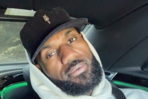 詹姆斯晒出了一张他乘车前往比赛球馆的自拍照。