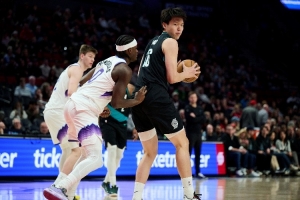 本场比赛杨瀚森在首节还剩4分多钟时替补登场,一次勾手不中,依靠造杀伤罚球拿到2分,还有不错的掩护帮助队友上篮得分;但防守和篮板做得不够理想,仅打了2分16秒就被斯普利特换下,末节最后50秒再被派上场,但并没有什么机会。