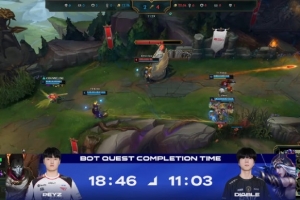 体育资讯2月15日讯 在今日LCK杯T1vsBFX第三局的比赛,BFX.Diable完成任务的时间比T1.Peyz提前近8分钟!