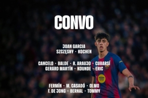 巴萨客战赫罗纳大名单: