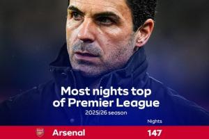 体育资讯02月19日讯 阿森纳联赛接连失分,榜首位置可能动摇,天空体育统计了本赛季各队占据积分榜榜首的天数。