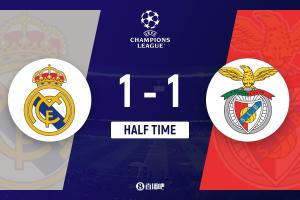体育资讯2月26日讯 体育资讯2月26日讯 北京时间4:00,欧冠1/8决赛附加赛次回合皇家马德里vs本菲卡,比赛在伯纳乌球场打响!上半场,拉法·席尔瓦帮助本菲卡率先破门,仅2分钟后琼阿梅尼迅速还以颜色;居莱尔进球被判越位。半场结束,皇马暂1-1本菲卡,总比分2-1暂时领先。