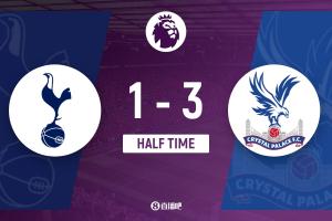 第45+7分钟,萨尔再进一球,热刺1-3水晶宫↓