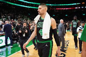 早些时候,凯尔特人官方突然宣布,球队中锋武切维奇遭遇无名指骨折,本场比赛不会回归。