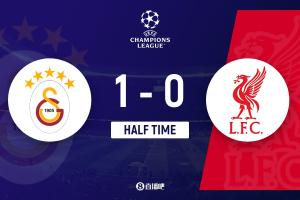 加拉塔萨雷1-0利物浦全场:射门15-15,射正4-6,控球率46%-54%