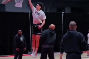 笑疯了刘冠杉扣篮前想把篮网用球砸下来 结果三投不中