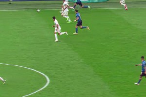 差一点!安以恩抗开阿尔瓦罗送传中,姆本扎头球攻门稍稍偏出