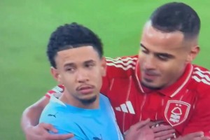 关键!安以恩获良机推射被阿尔瓦罗封堵,王大雷与后者激动拥抱